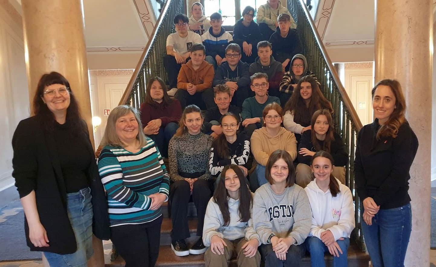 Annette Hehr und Raphaela Schneider (von links) mit einer der vielen schulklassen, die 2023 das Stadtmuseum besuchten. Archiv-Foto: pm