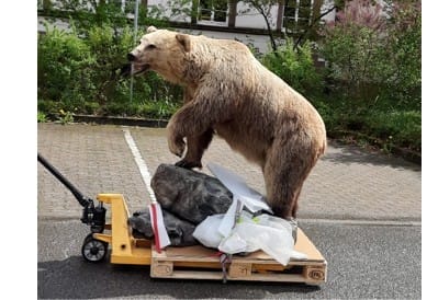 Der ausgestopfte Bär aus der Mensch Biene Ausstellung bedeutete eine besondere Herausforderung für das Museumsteam, erzählte Hehr im Ausschuss. Wegen der großen Sommerhitze habe man das Tier akribisch überwacht, damit ihm nicht zu heiß und vor allem nicht zu trocken werden würde. Schließlich habe sie sich entschieden, „einen eigenen Luftbefeuchter für das Tier zu kaufen. Den haben wir ihm dezent unter dem Popo gestellt, um für entsprechendes Wohlfühlklima zu sorgen.“ Foto: Hehr