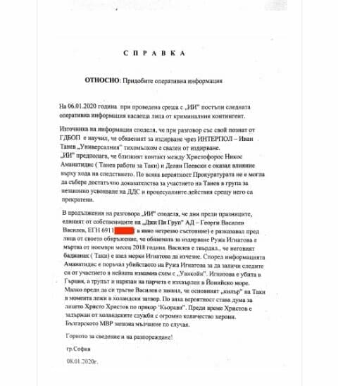 Die „BIRD“-Autoren haben beim bulgarischen Innenministerium und der zuständigen Staatsanwaltschaft nachgefragt. Während das Innenministerium schweigt, hat Hristo Krastev, der Stellvertretende Stadtstaatsanwalt der Staatsanwaltschaft Sofia geantwortet. Er bestätigt, dass die Staatsanwaltschaft diese Papiere beim ermordeten Ex-Polizisten gefunden hat.