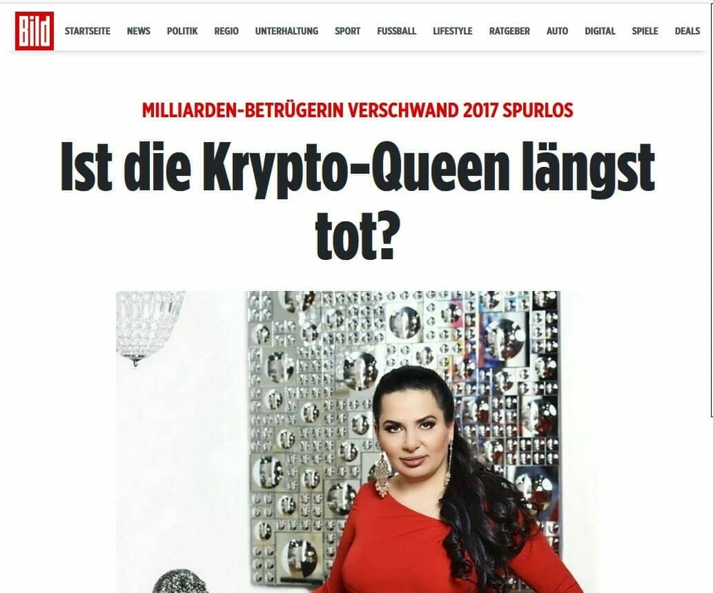 Eine solche Geschichte lässt sich die „Bild-Zeitung“ nicht entgehen und fragt am Montag: „Ist die Krypto-Queen längst tot?“