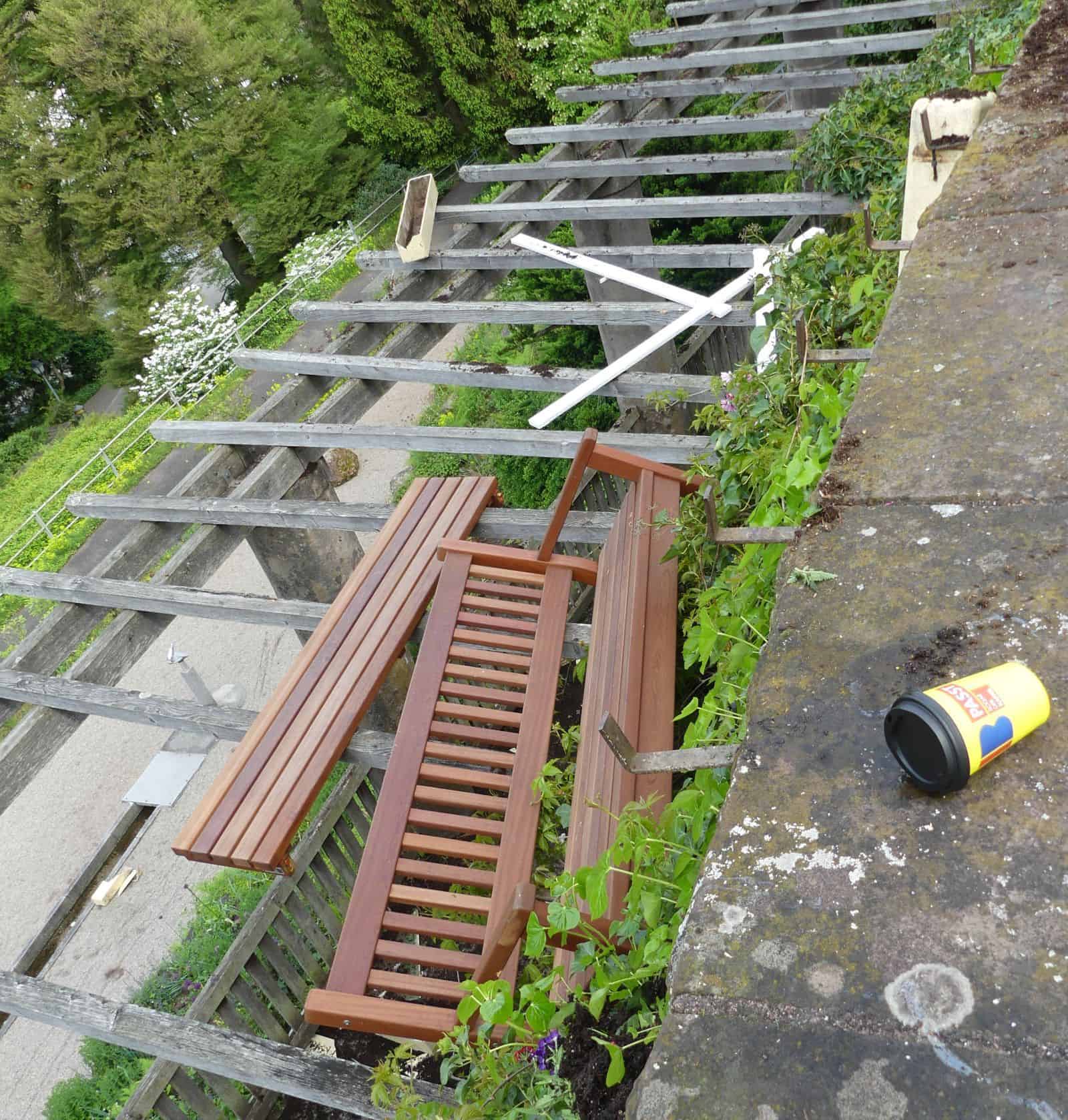 Unterdessen haben Mitarbeiter des Bauhof damit begonnen, die kaputten Bänke und Blumentröge einzusammeln und die gröbsten Schäden zu beseitigen.