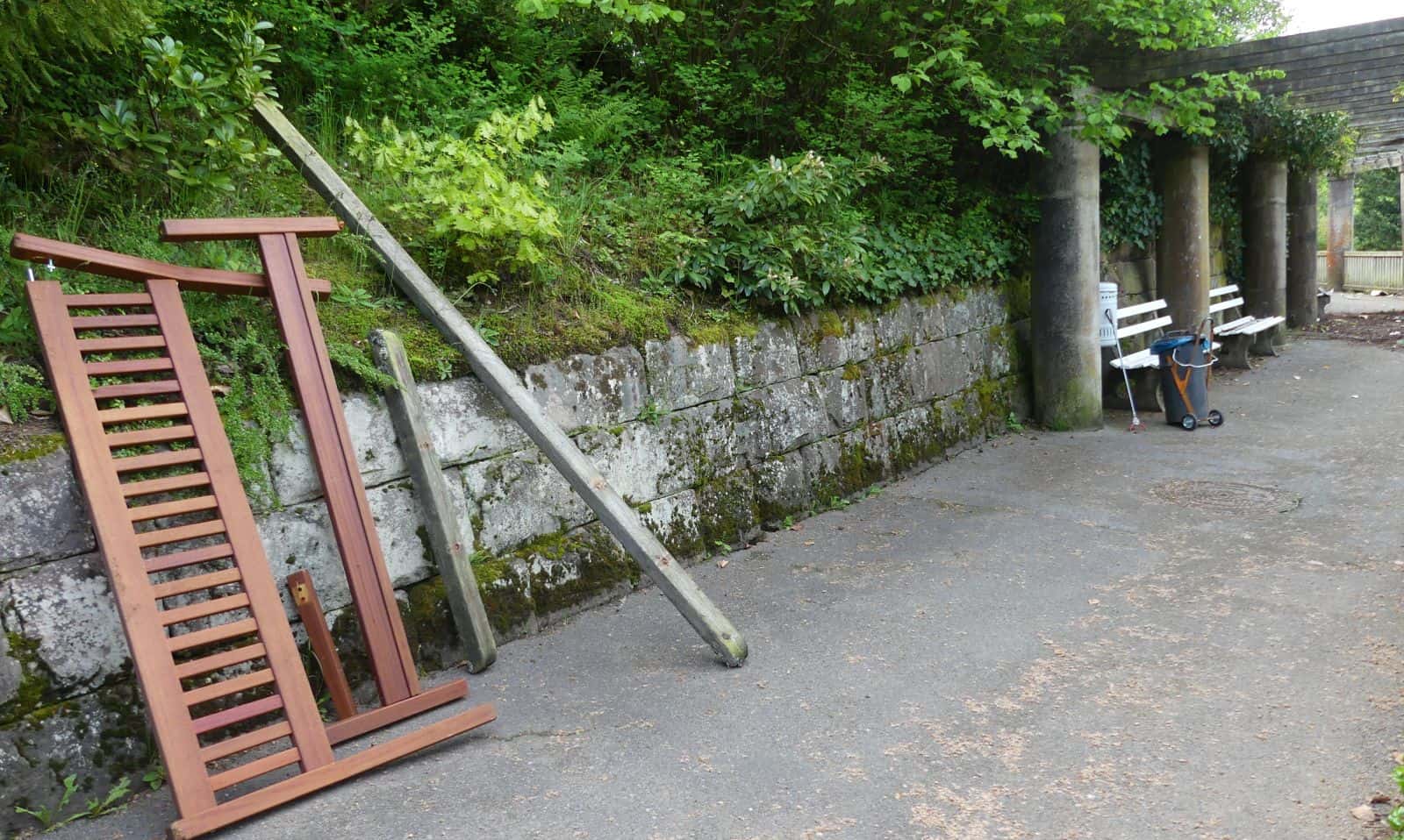 Der Leiter der Abteilung Tiefbau Konrad Ginter nennt die Aktion „richtig bescheiden“ und verweist auf den für den 23. Juni geplanten Sommerempfang der Stadt im Park der Zeiten. Bis dahin würde er gern die zertrümmerten Parkbänke ersetzt haben. „Aber die Lieferzeit beträgt derzeit sechs bis acht Wochen.“