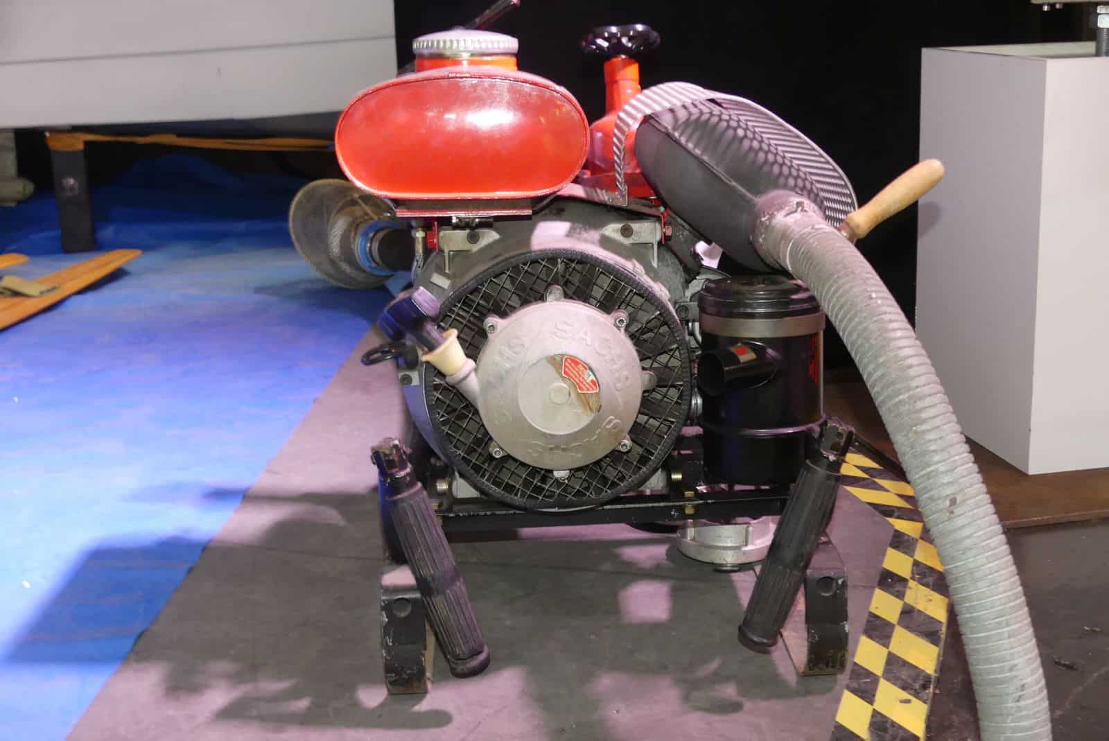 eine leichte Tragkraftspritze für die Feuerwehr: „Statt vier Mann zum Tragen für eine Spritze mit VW-Motor reichen für diese zwei Feuerwehrleute“, weiß Jundt.
