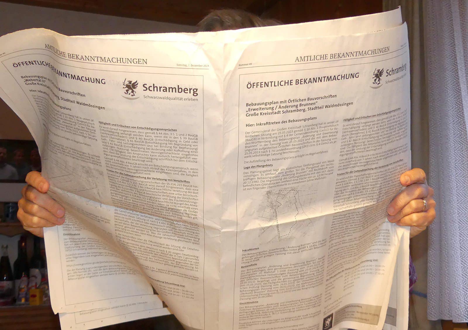 Wer am Samstagmorgen die örtliche Tageszeitung aufgeschlagen hat, dürfte sich gewundert haben: Ein ganzes „Zeitungsbuch“ hatte die Stadt Schramberg belegt. Auf zwölf Seiten gibt die Stadt das Inkrafttreten jeweils eines Bebauungsplans bekannt.