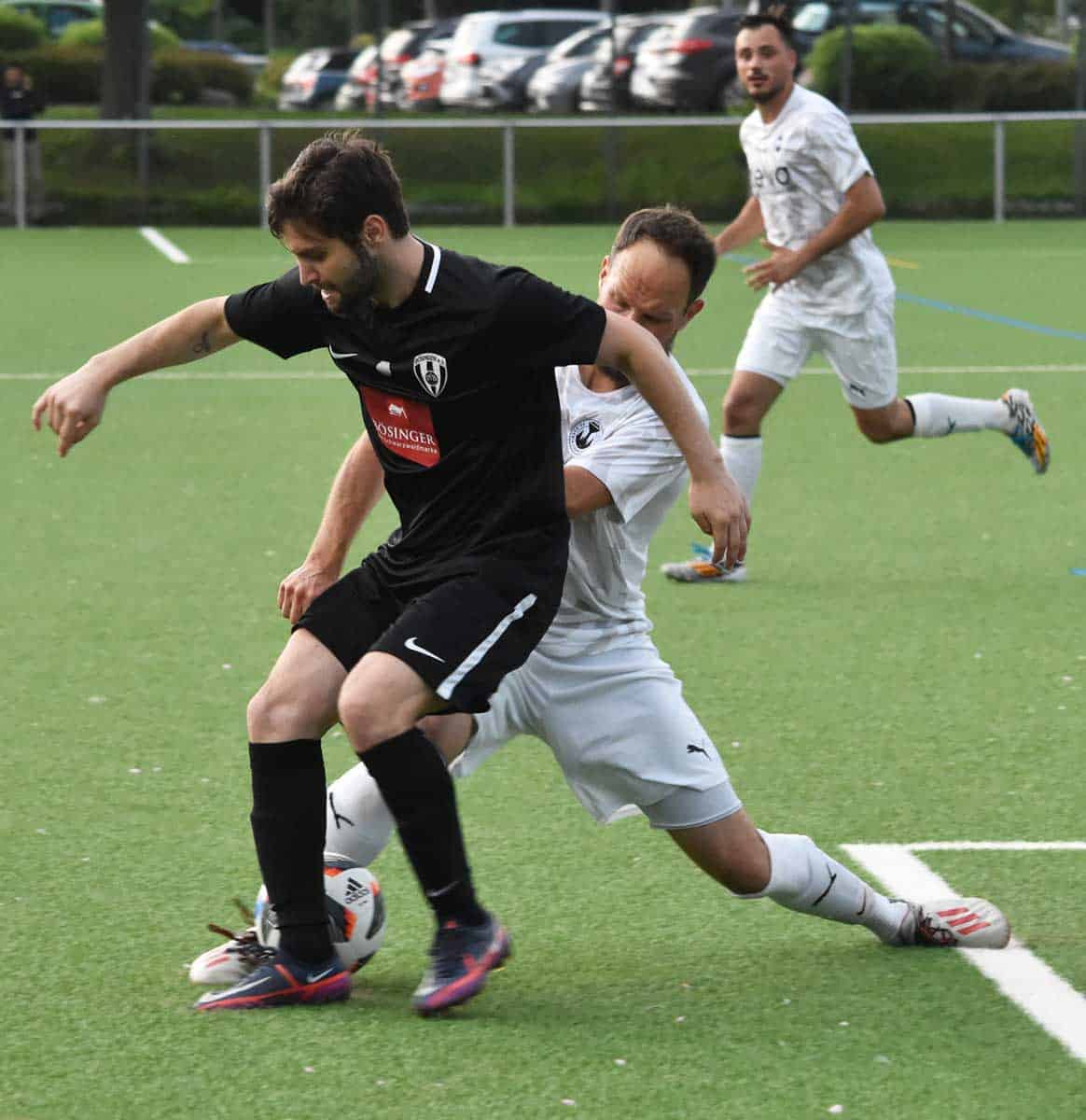 Und es waren zwei gegensätzliche Halbzeiten. In den ersten 45 Minuten machten die in der Kreisliga A spielenden Gastgeber Druck und ließen den Bezirksligisten kaum mal vor ihr Tor kommen. Vor allem Marc Agyemang. Er setzte seine Vorderleute ein und zog auch selber ab. Christopher Wiest weit übers Tor (11. Minute), Kopfball an die Latte (15.), Flugkopfball Johannes Schneider (38.), Fabio Wagner im Liegen knapp daneben (39.) – um nur diese Möglichkeiten zu nennen. Doch Zählbares kam nicht heraus. So ging es torlos in die Pause.