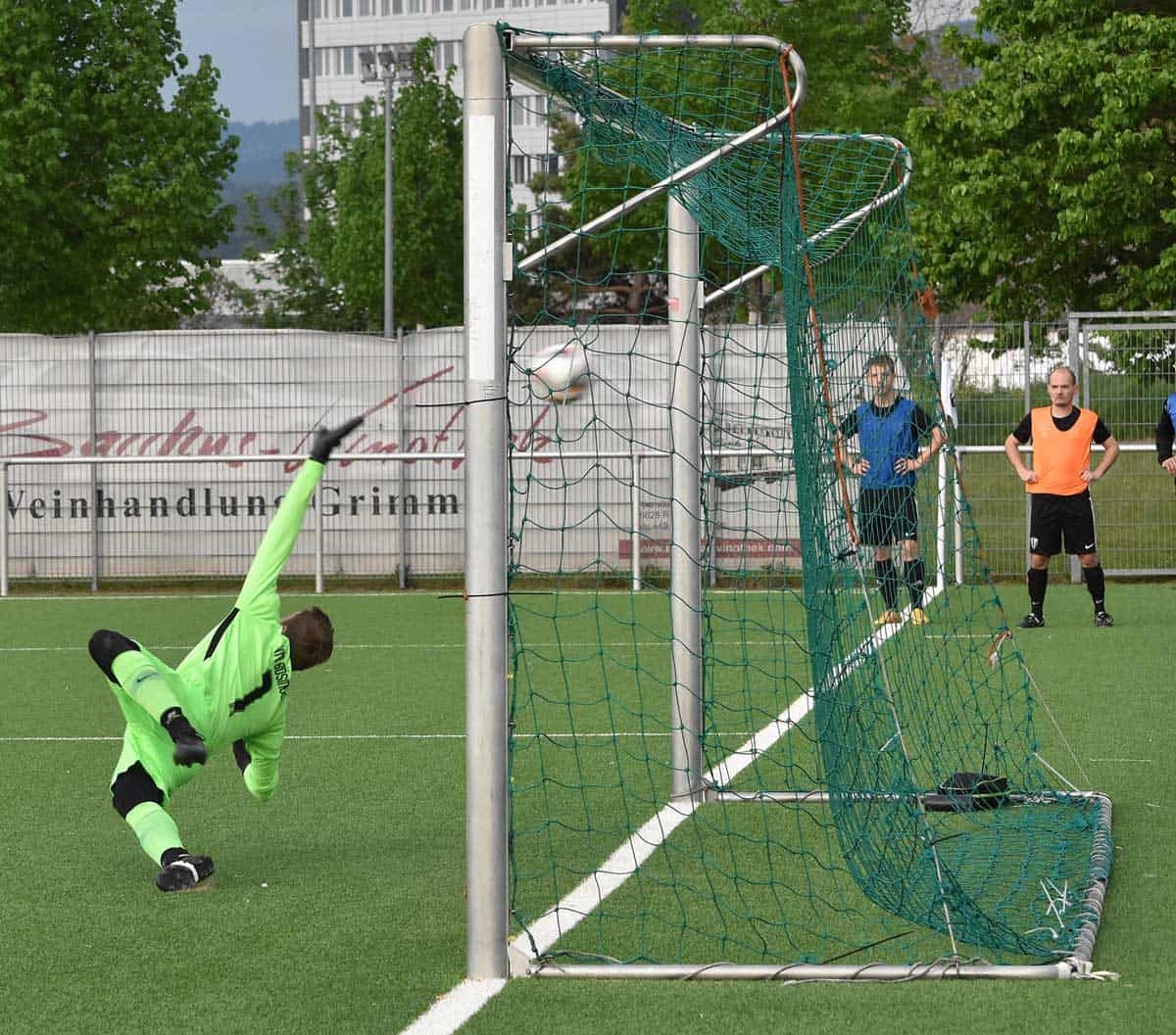 Aber ein eigener: Christopher Wiest unterlief das Unglück, den Ball ins eigene Tot zu lenken. 1:1 in der 80. Minute. Und als ob das nicht schlimm genug wäre: Zwei Minuten später musste Luigi Cusumano mit Gelb-Rot vom Platz. Und so ging es ins Elfmeterschießen (eine Verlängerung sieht die Regel nicht vor).