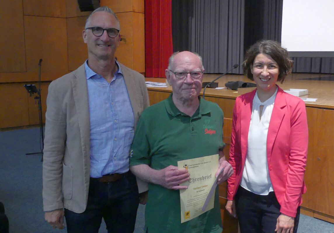 Den Ehrenbrief erhielt Herbert Oehler, der sich jahrzehntelang bei Radfahrverein Edelweiss als aktiver Radballer, im Vorstand, als Rennradfachwart und als Rennleiter engagiert habe.