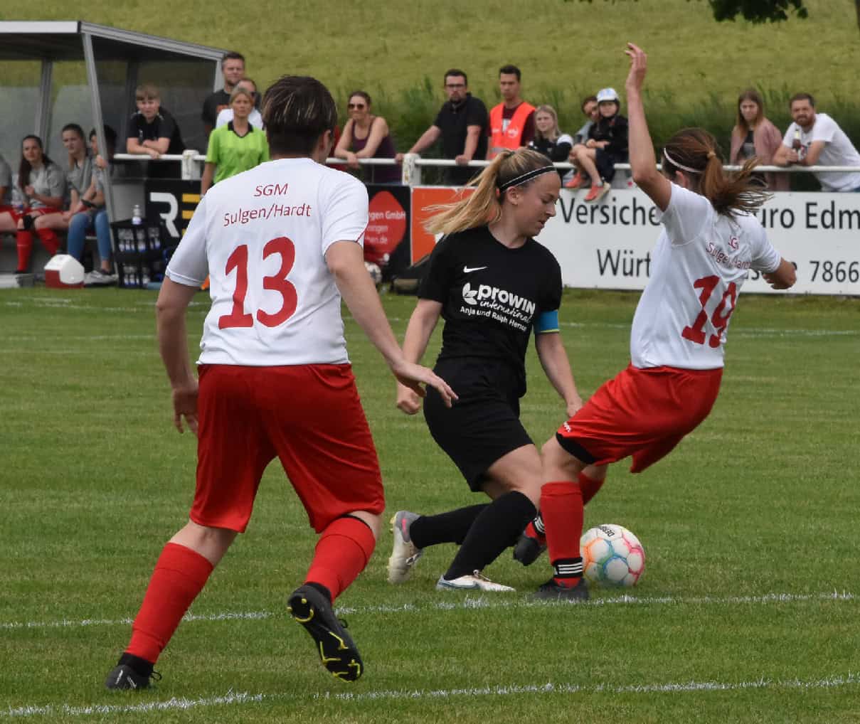 Zwar hatten die Rot-Weißen aus Sulgen und Hardt die erste Tormöglichkeit, doch Selina Otto schoss über das Tor (15.). Doch die Bezirksligistinnen gewannen die Überhand, auch wenn es bis zur 35. Minute dauerte, bis der erste Treffer fiel. Freistoß von rechts, hoher Ball, Lara Ernst lochte zum 1:0 ein. Nur wenig später nutzte Selina Broghammer ein Missverständnis in der gegnerischen Abwehr zum 2:0. Und schließlich machte Lara Ernst das 3:0, nachdem sie sich einen gegnerischen Pass erlaufen hatte. In der zweiten Hälfte gab es noch einige sehenswerte Szenen, aber keine Treffer mehr. Nun verzogen sich auch die dunklen Wolken, so dass die Sonne die Pokalübergabe beleuchtete.