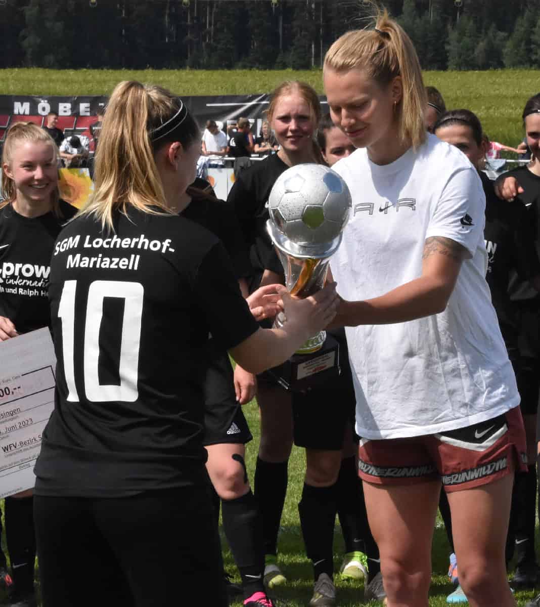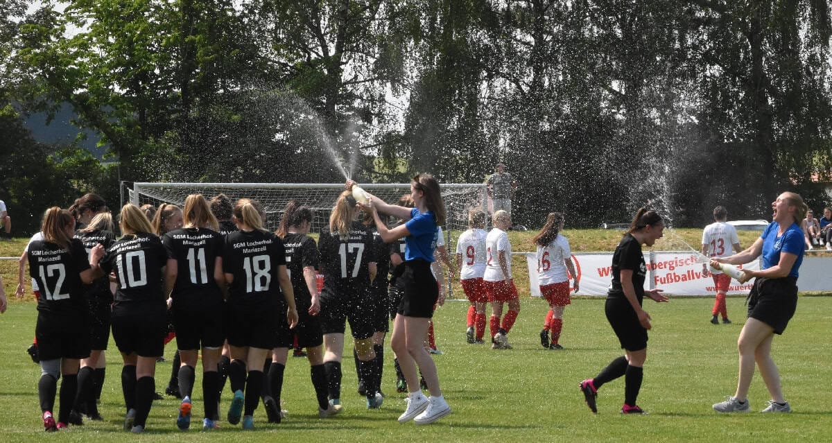 Das Double ist perfekt: Die Damen der SG Locherhof/Mariazell haben heute das Finale des Bezirkspokals mit 3:0 (3:0) gegen die SG Sulgen/Hardt gewonnen. Und das vor einer beeindruckenden Kulisse – schon beim Anpfiff waren 400 Zuschauer auf dem Bösinger Sportplatz.