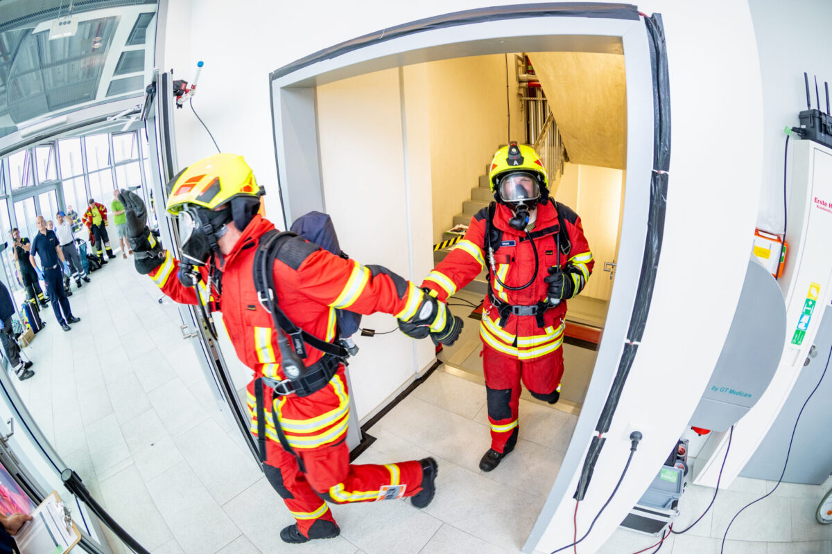 Neben den zahlreichen Hobby- und Profiathleten stellten sich auch viele Feuerwehrleute der außergewöhnlichen Herausforderung. Ausgerüstet mit Atemschutzgeräten und einer bis zu 25 Kilogramm schweren Einsatzmontur traten sie im Zweierteam an, um den TK Elevator Testturm zu bezwingen. Diese mit Abstand härteste Disziplin des Towerruns verlangte den Teilnehmenden alles ab – und bot zugleich ein eindrucksvolles Bild für die Zuschauer, die die sechste Auflage des Events live verfolgten.