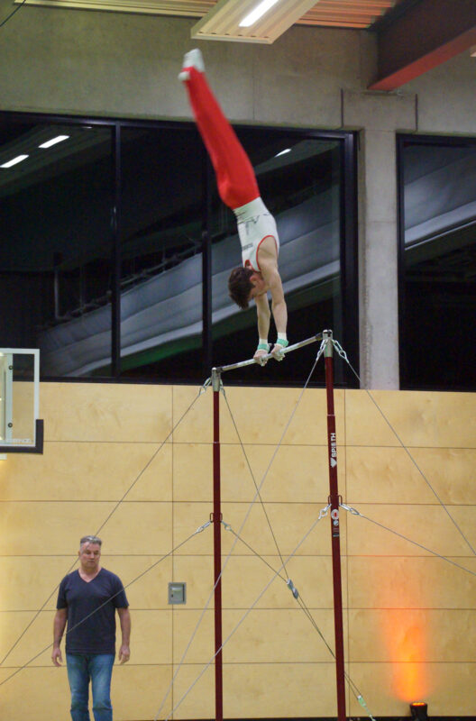 Den Abschluss und Höhepunkt brachten die Turner am Hochreck. Karl-Wolfgang Staiger hatte seine Jungs aus der Wettkampfgemeinschaft Villingendorf/Rottweil dazu überzeugen können, an der Turnschau mitzuwirken. Es turnten hier Fin Holzner, Gabriel Storz und Lionel Kurz. Als Höhepunkt kam Timm Sauter vom Turnverein Schömberg und Stadtsportverein Singen dazu. Der Turner aus der 2. Bundesliga zeigte sein Können am Königsgerät. Aber auch die anderen drei Turner brauchten sich nicht hinter dem Spitzenturner zu verstecken. So ging ein umfangreiches, aber kurzweiliges Showprogramm zu Ende.