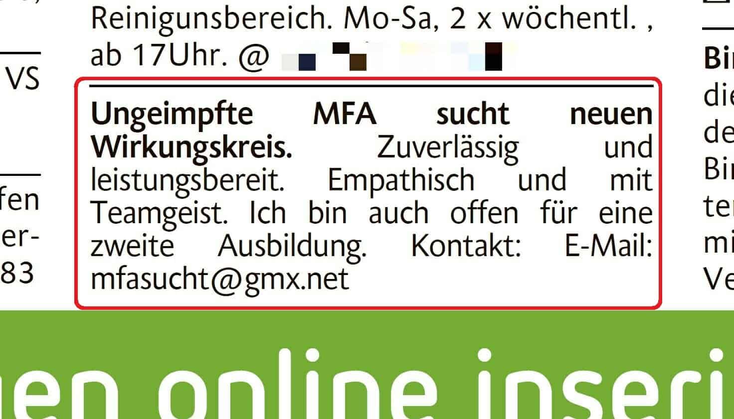Schramberg. Seit einigen Tagen mehren sich in den Kleinanzeigenspalten von Tageszeitungen Inserate von angeblich ungeimpften Menschen aus dem…