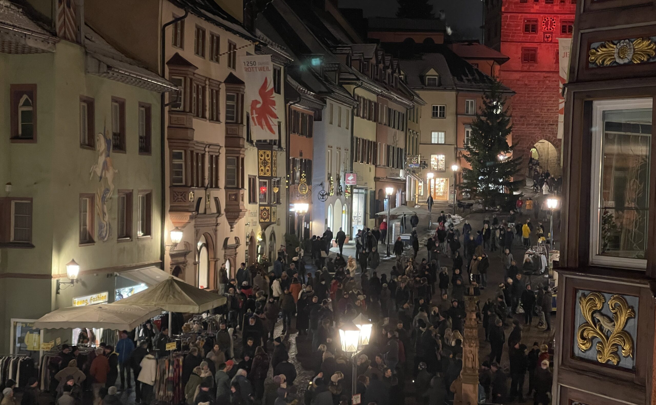 ROTTWEIL. Am Montag ab 18 Uhr haben sich erneut viele hundert Menschen in Rottweil getroffen, um im Rahmen…