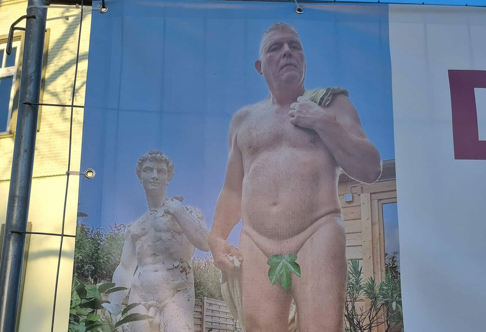 Wie Gott ihn schuf, ein Tüchlein nur auf der Schulter, so protestierte vorübergehend der Rottweiler Dieter E. Albrecht…