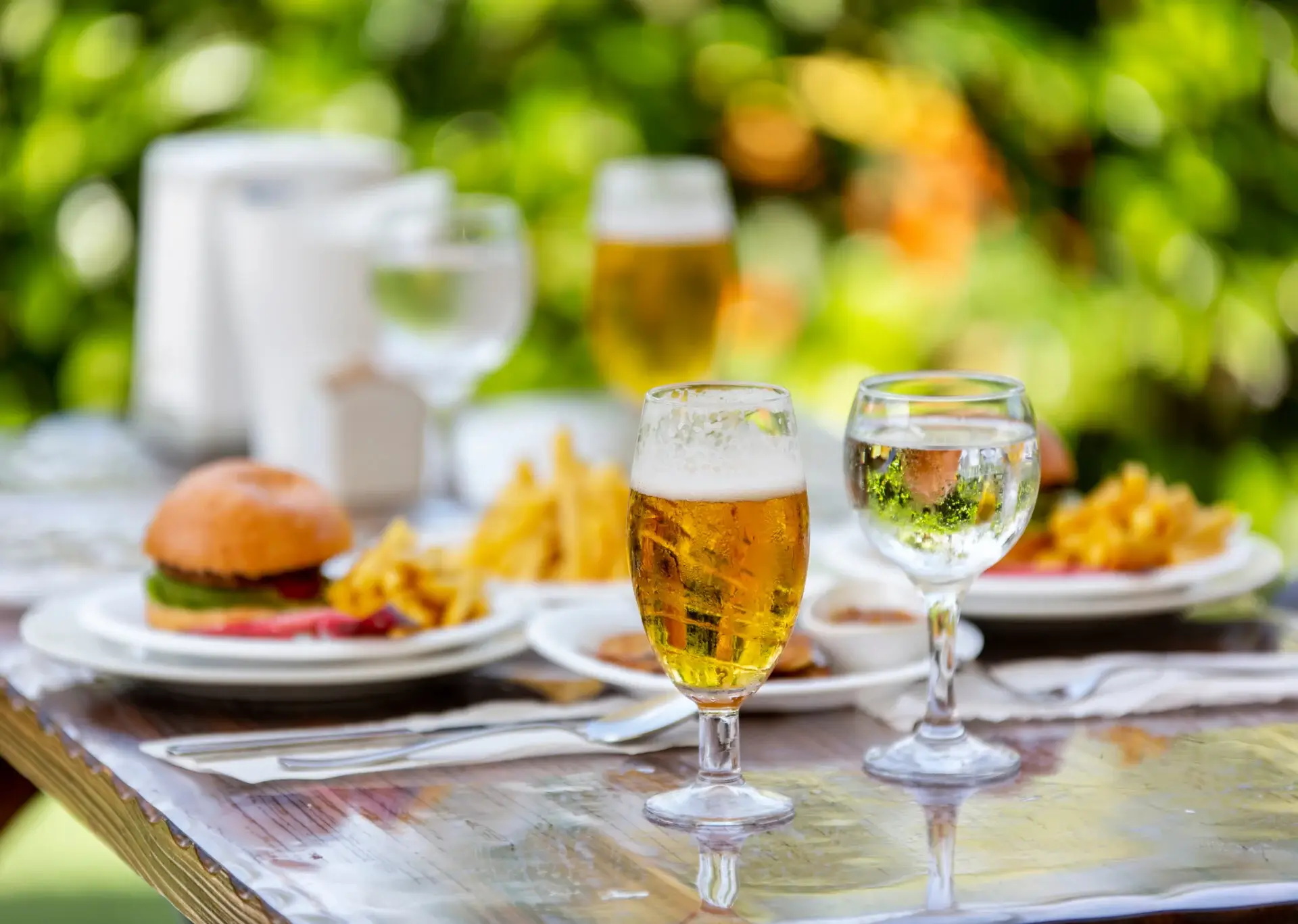 Menschen versammeln sich gerne in den Restaurants der Region - die nun auch draußen einladend angerichtet haben. Biergärten…