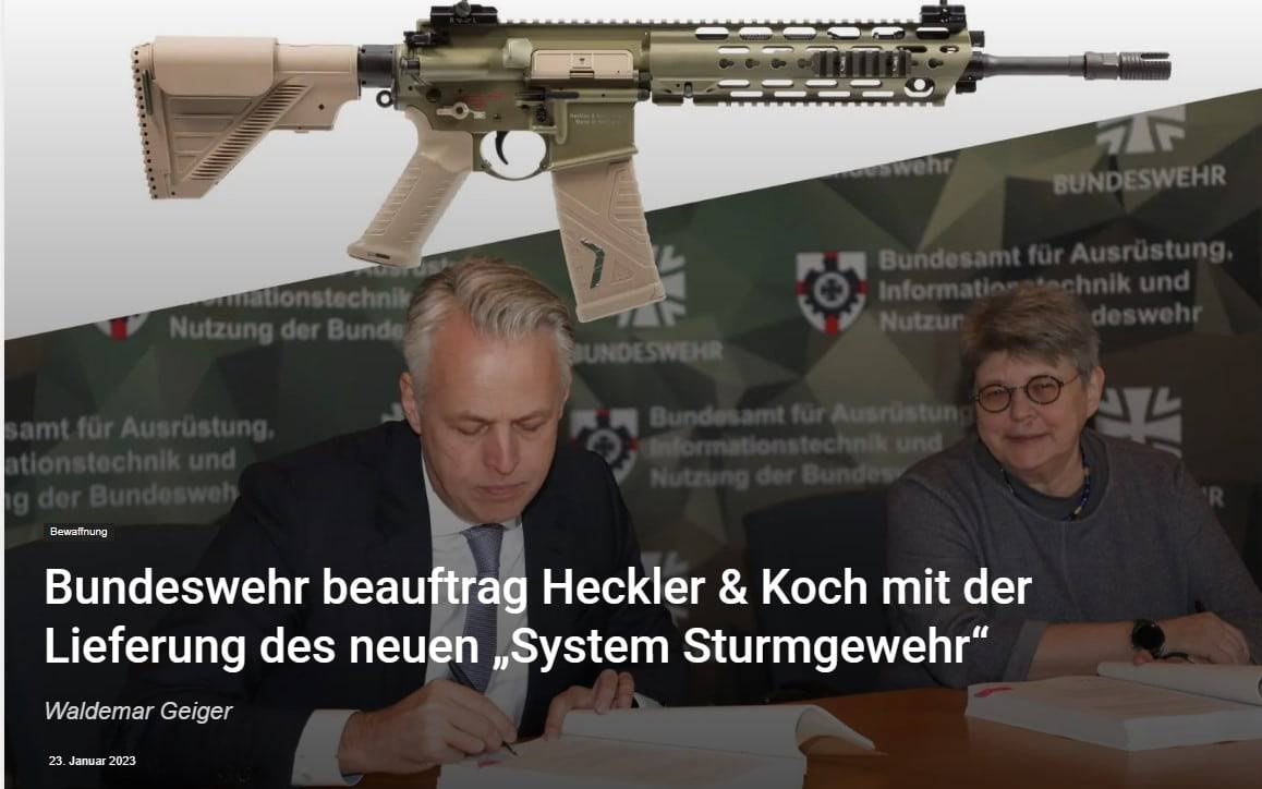 Auf Einladung der Vizepräsidentin des Amtes seien am Montag Vertreter der Geschäftsführung des Hersteller Heckler und Koch als auch die Projektleitenden des BAAINBw zum Abschluss von letzten vertraglichen Details zusammengekommen. „Der Grundstein für das Projekt wurde mit der Billigung des geschlossenen Vertrages durch den Haushalts- und Verteidigungsausschuss des Deutschen Bundestages im Dezember 2022 zur Beschaffung der zukünftigen Standard-Bewaffnung der Soldatinnen und Soldaten gelegt“, heißt es da.