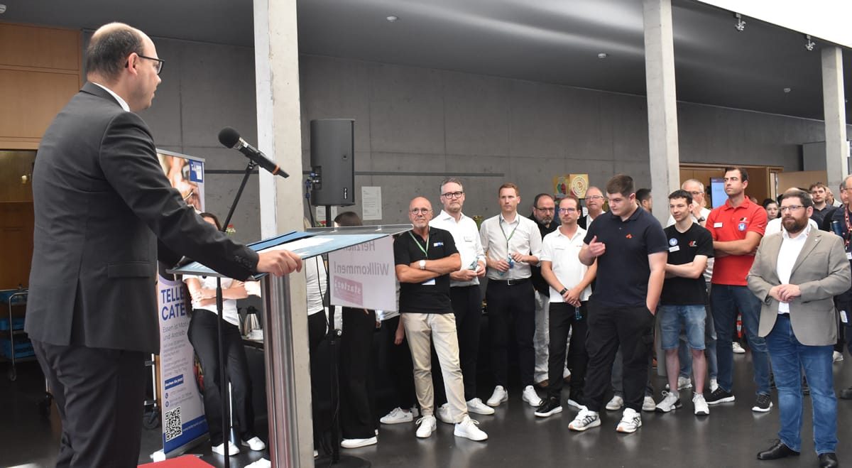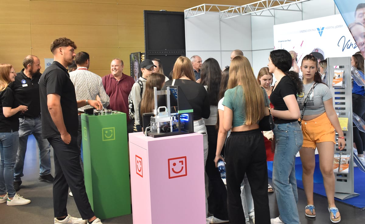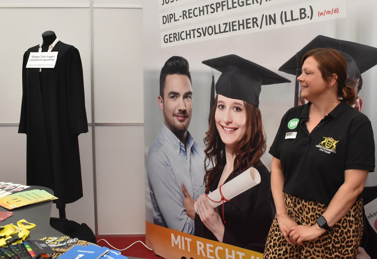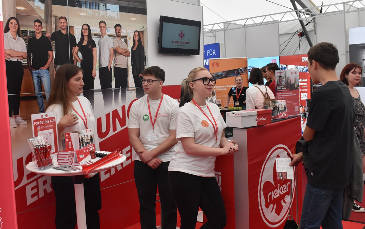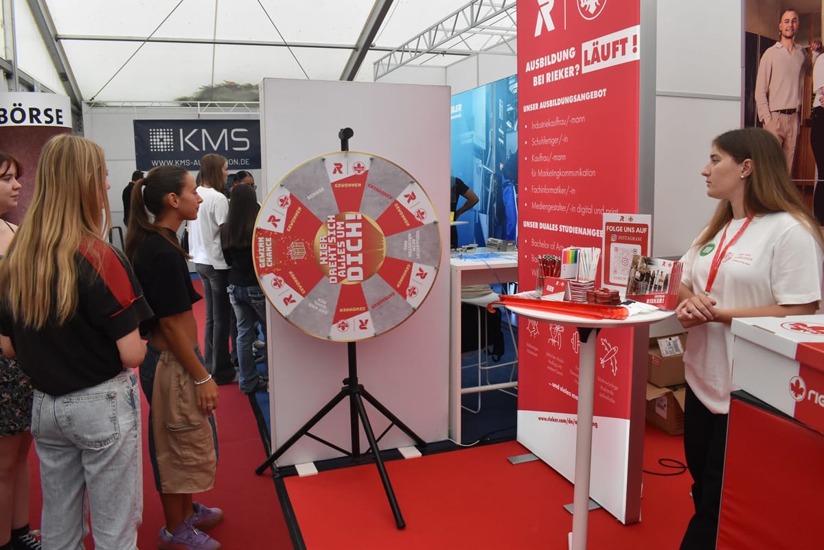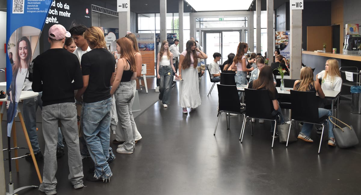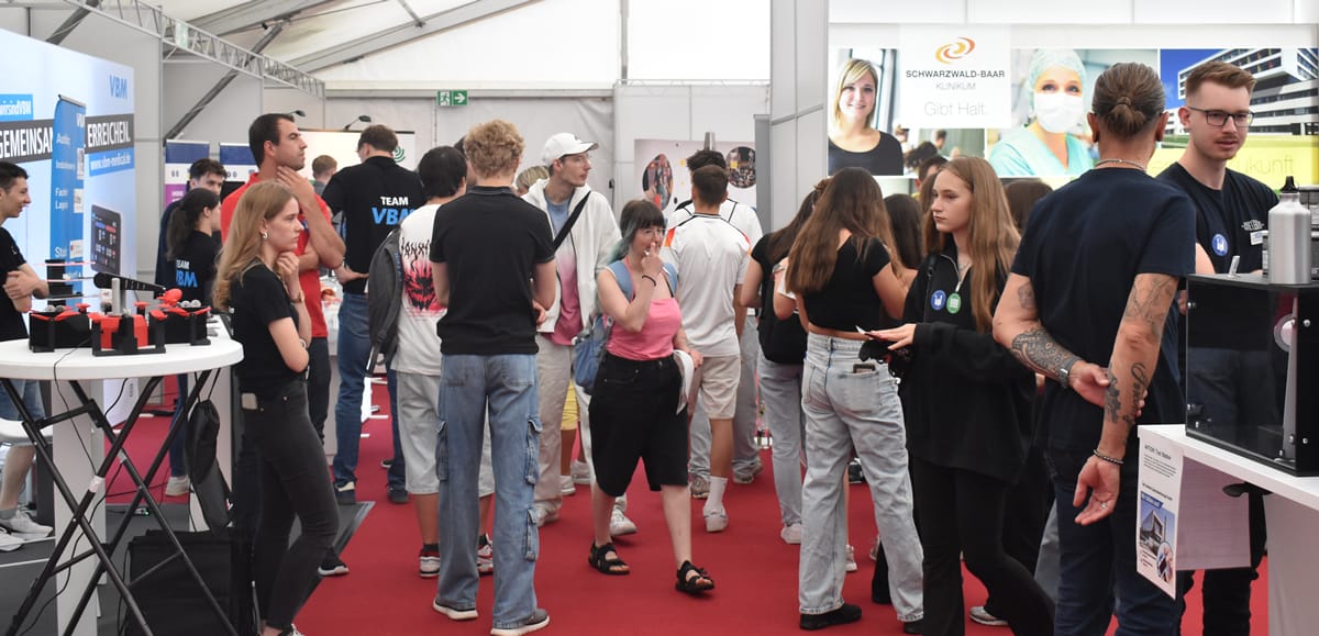 Rottweil – Schon vor dem offiziellen Beginn, vor der Eröffnung durch Oberbürgermeister Dr. Christian Ruf und den IHK-Hauptgeschäftsführer Thomas Albiez, kamen immer wieder Schülerinnen und Schüler in die Stadthalle. Ob sie so begeistert waren wie der OB? Der jedenfalls zeigte sich hoch zufrieden mit dem, was die Aktiven um Bettina Weigl und Alexander Stengelin auf die Beine gestellt hatten. Dies sagte er bei der Eröffnung. Er lobte das breite Portfolio der Aussteller, „das wirklich kaum einen Wunsch offen lässt“. Die Messe sei in den 19 Jahren ihres Bestehens zu einem „wichtigen Aushängeschild für die Wirtschaftsförderung in der Region“ geworden.