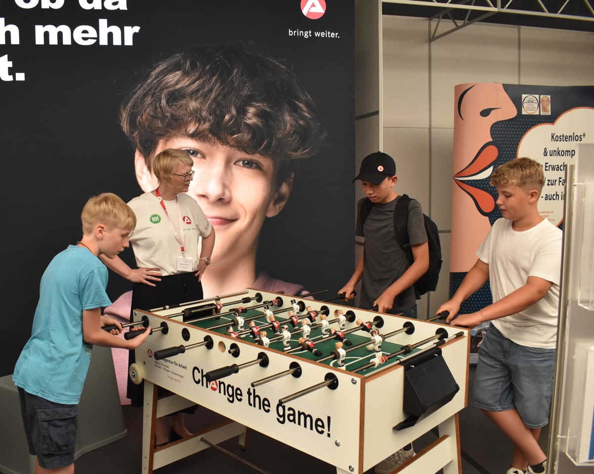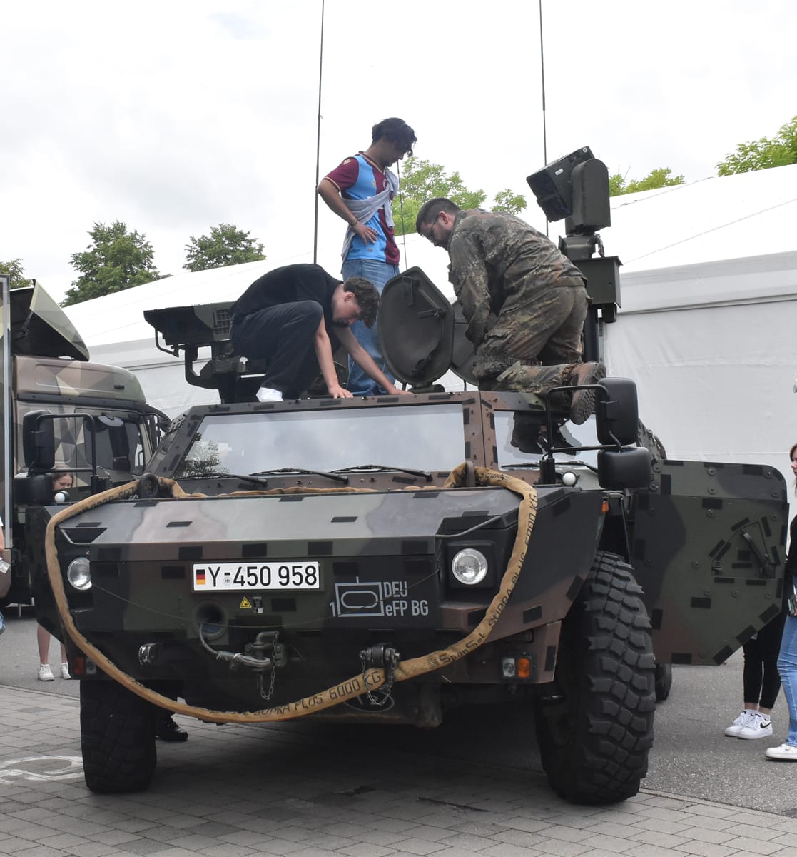 Die jungen Menschen jedenfalls zeigten sich interessiert. Dass Vorteile hat, wer an seinem Stand mit Spielerischem oder auch Neuem die Aufmerksamkeit erregt, ist sicher keine neue Erkenntnis und hat sich auch heuer wieder bestätigt. Die Trauben an Jugendlichen waren eher an Ständen zu finden, wo Aktion geboten war. Besonders bei den Jungs war das gepanzerte Bundeswehr-Fahrzeug beliebt.
