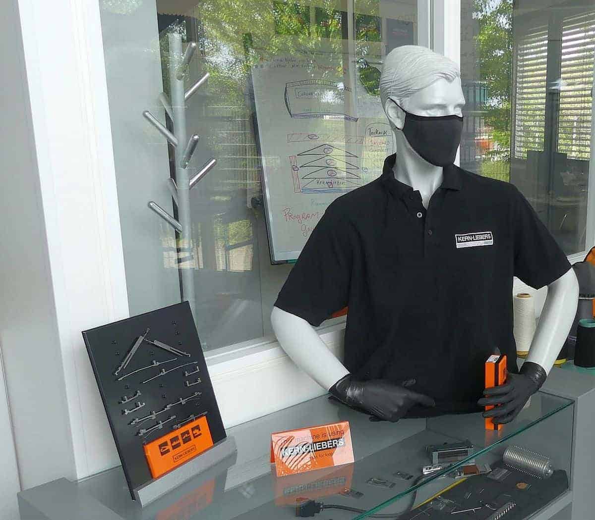 Als die beiden Textilexperten ihre Masken entwickelt und erste Exemplare gestrickt hatten, kamen sie auf die Vorstände zu und haben ihre Idee vorgestellt, erinnert sich Geschäftsführer Hannes Steim. In der Chefetage fand man die Idee brillant und beschloss, zunächst für die Mitarbeiter im Stammwerk und dann für alle Kern-Liebers Unternehmen weltweit je zwei Masken stricken zu lassen. Kern-Liebers-Chef Udo Schnell hat besonders überzeugt, wie leicht die Maske ist, nämlich gerade mal zwölf Gramm, und dass man gut hindurch atmen kann.