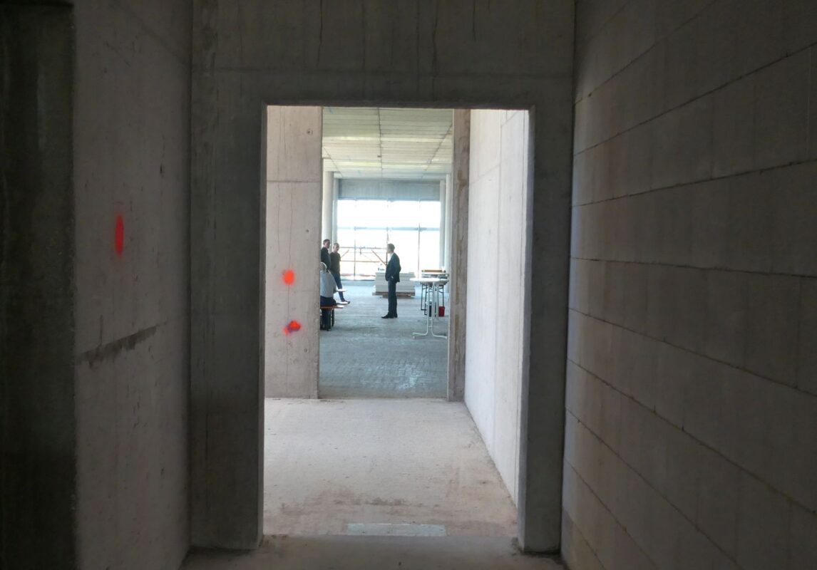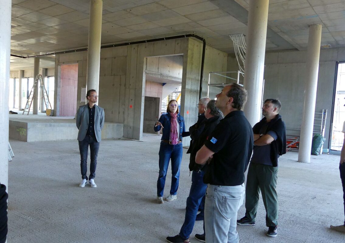 Bei einem Rundgang über die Rohbaustelle erläuterte Maurer die verschiedenen Bereiche und welche Möglichkeiten das Gebäude bietet.