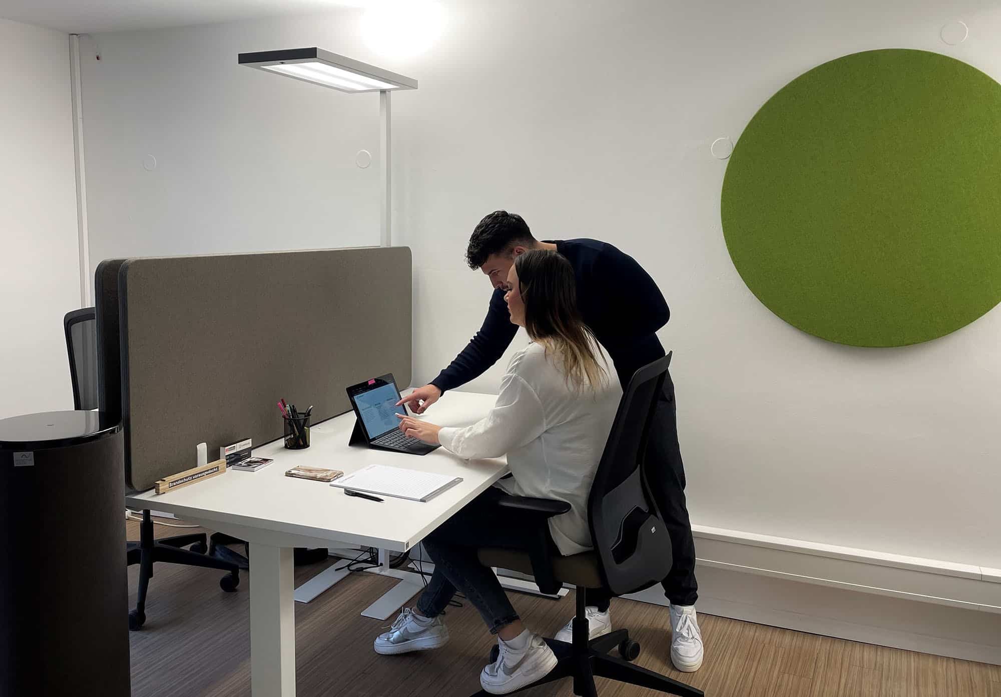 - Arbeiten und Wohlfühlen in einem modernen Designbüro, ergonomische Bürostühle und höhenverstellbare Tische zeichnen die professionelle Ausstattung aus.