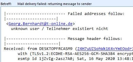 Nachtrag: Prüft man die E-Mailadresse des Absenders unserer Titelmail, erhält man diese Antwort: