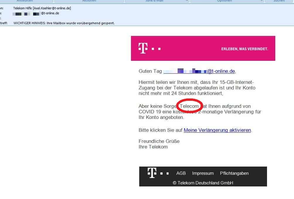 Mit teilweise sehr gut nachgemachten Mails, die aussehen wie von der Telekom oder auch anderer Unternehmen, versuchen Betrüger Computernutzer auszunehmen. Die Polizei rät, solche Mails zu löschen und keinesfalls irgendwelche Schaltflächen auf den Mails anzuklicken.