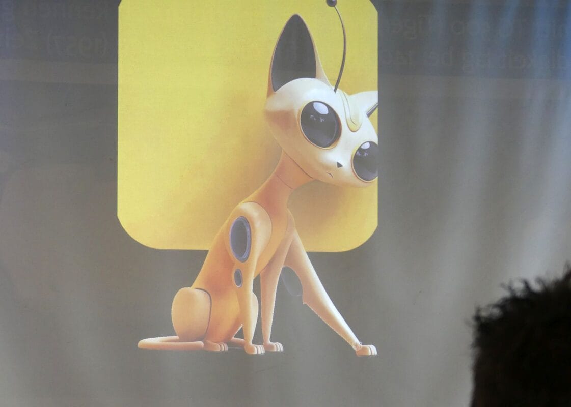 Finnern wies zur Einführung auf ein neues Logo der KI Impact Group hin – eine Katze. Nicht so sehr wegen der „hoorig Katz“ – auch wenn der ein oder andere Fasnetsbegeisterte im Publikum war, sondern wegen „Schrödingers Cat“. Das berühmte Paradoxon des Physikers Schrödinger sei so etwas wie die gedankliche Urzelle von KI, so Finnern. Dass diese schon viel kann, zeigte eine KI-generierte Animation der Katze. Dass sie aber auch noch Fehler macht, eben auch.