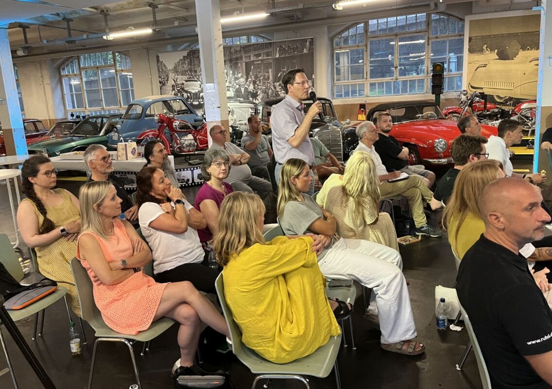 Das war nicht das Standardpublikum: Marketingleute, Werbegrafikerinnen Designer, Texter, Softwareentwicklerinnen, aber auch Personalerinnen und Leute aus der Produktion waren am Dienstagabend im Auto- und Uhrenmuseum zusammengekommen. Von Holger Siegel wollten sie bei einem Workshop erfahren, wie KI ihre Marketingbemühungen verbessern kann.