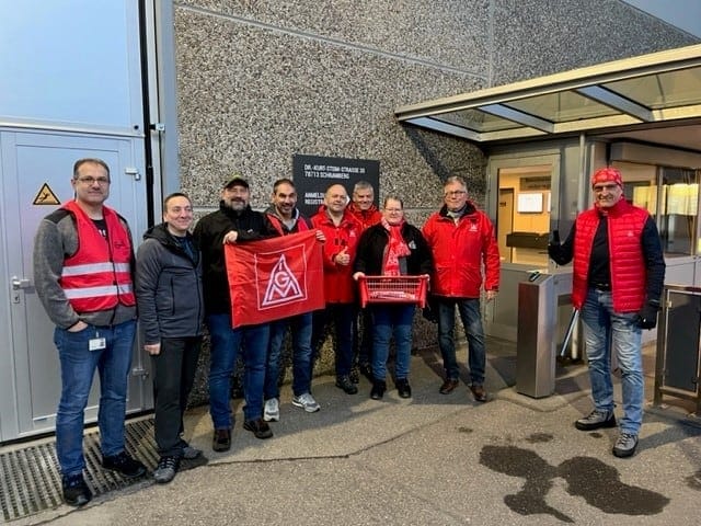 Diesen Anspruch auf die Tarifverträge hätten die IG Metall Mitglieder zu 100 Prozent. Zu den bestehenden Tarifverträgen zähle auch das Tarifergebnis von 2022. Auf der Rückseite des vierseitigen Flugblattes findet sich denn auch ein Aufnahmeantrag für die IG Metall.