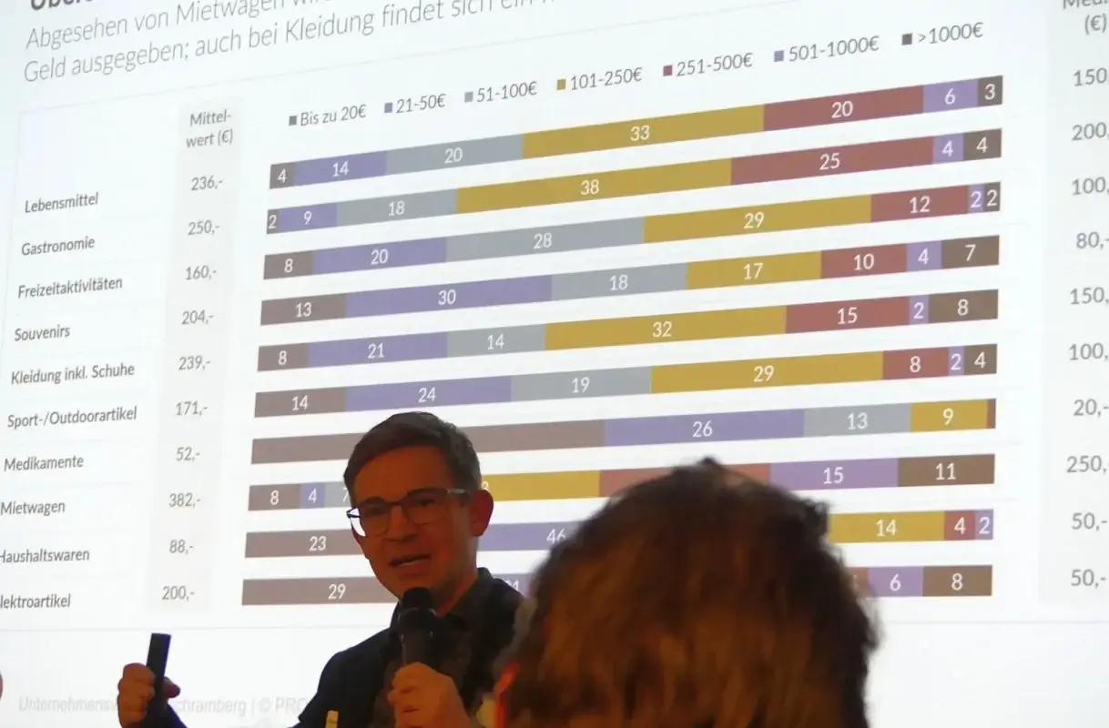 Der Tourismus sei eigentlich ein „gesättigter Markt“, so Klöpf. „Der Kuchen wird nicht größer.“ Ein weiterer Trend sei die zunehmende Digitalisierung und der Einsatz von „Künstlicher Intelligenz“. So würden Hotelpreise nicht mehr wie früher lange voraus festgelegt, sondern hingen vom Ort der Anfrage ab. „Wenn Sie aus München mit einem I-iPhone buchen, zahlen Sie schon mal 20 Prozent mehr als wenn Sie auf einem Huawei aus Leipzig anrufen“, erklärte Klöpf dem staunenden Publikum.